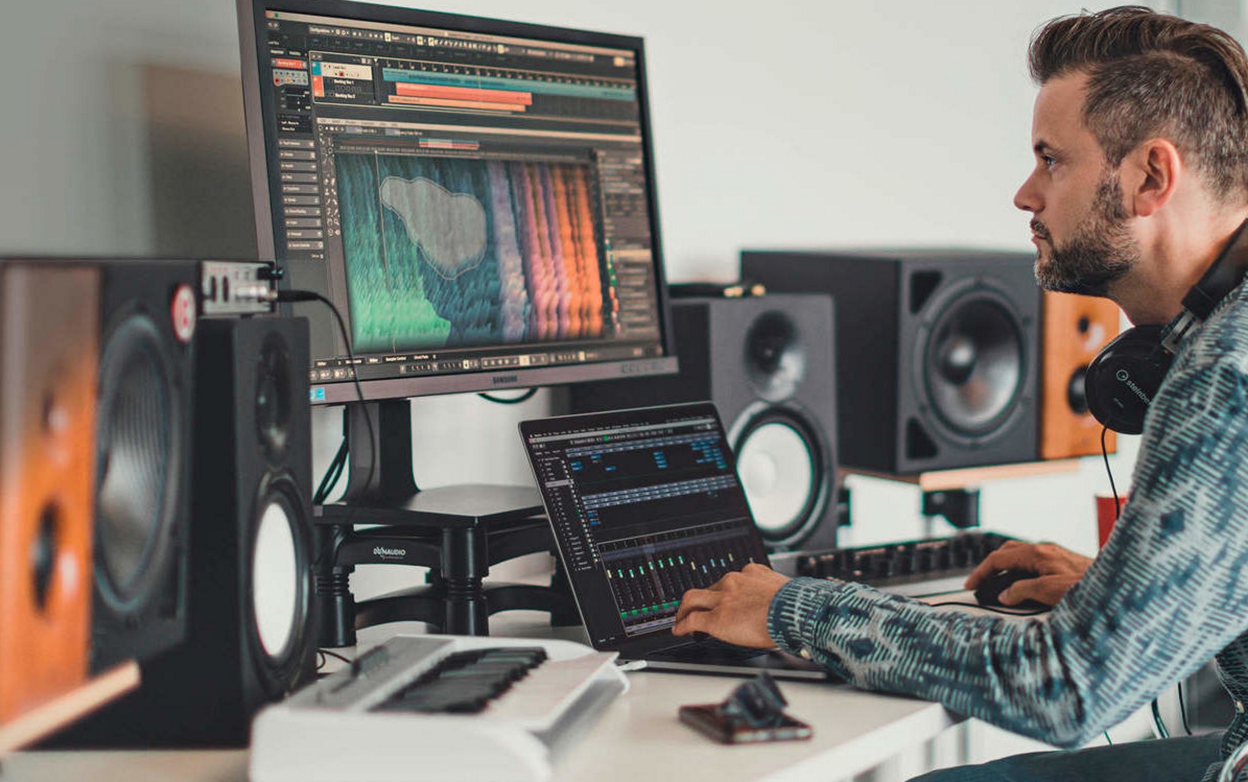 Как видено, мы используем качественное, дорогое оборудование и аксессуары для производства профессиональных аудиороликов. Аудиоконтент, произведенный нашими специалистами, отличается высоким качеством и способен удовлетворить даже самых придирчивых заказчиков. Для изготовления профессиональных аудиороликов обращайтесь в рекламно-производственную компанию «Фасад Медиа Групп». Будем рады сотрудничеству.