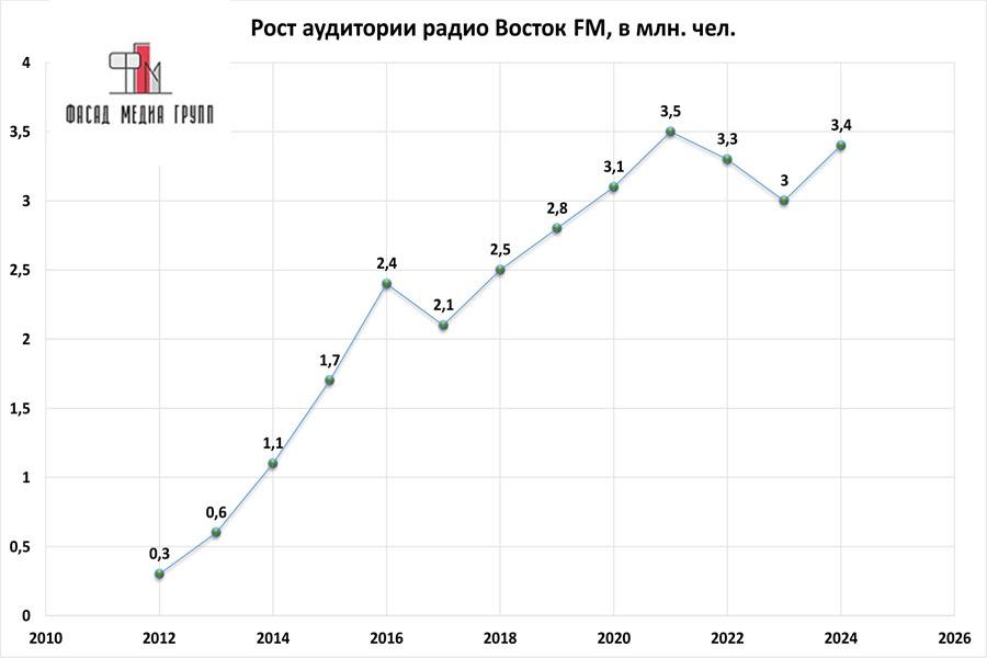 Аудитория «Восток ФМ» обширна. Эфир радиостанции собирает многомиллионную публику радиослушателей.